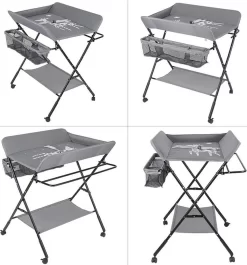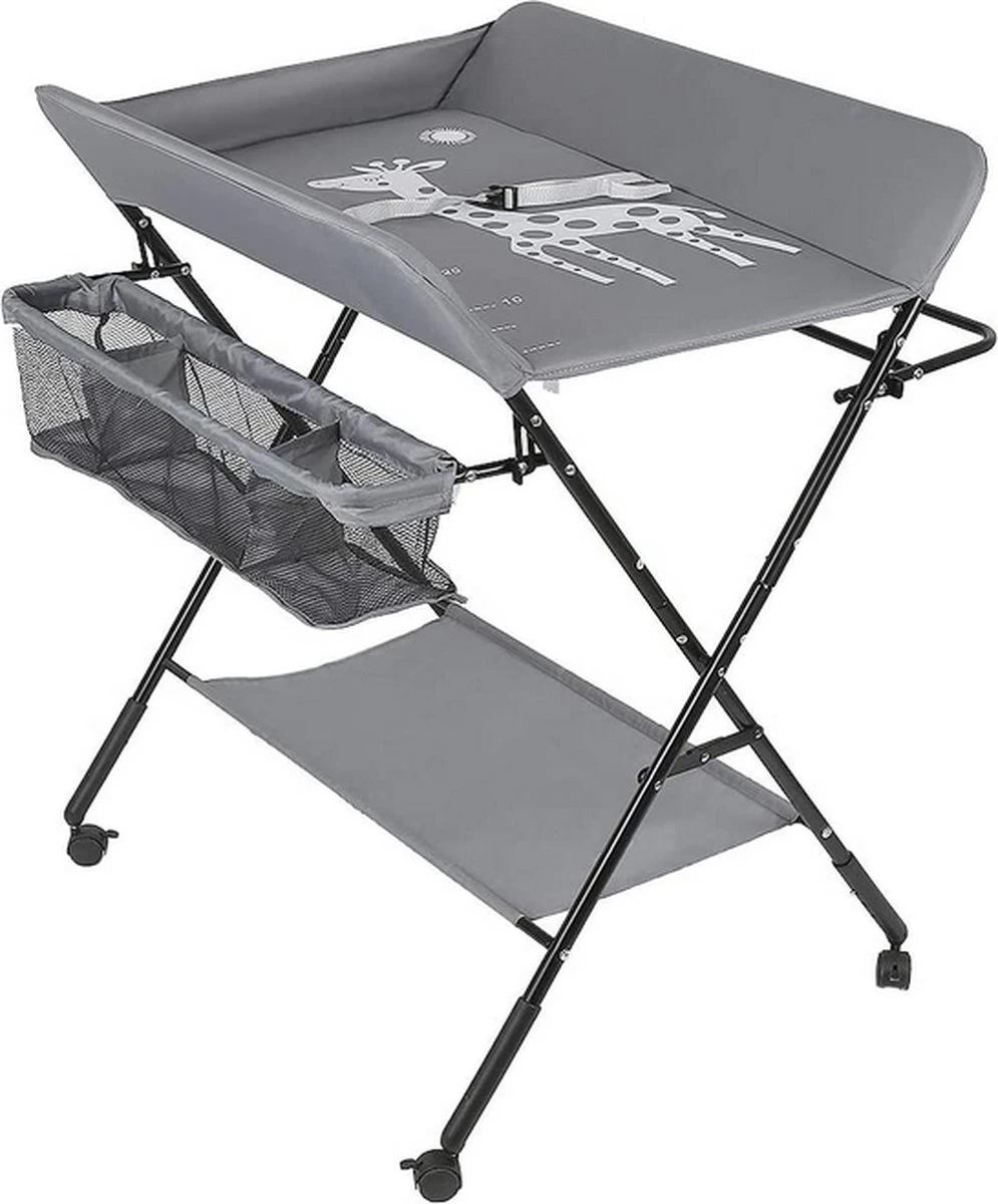 Kari Verschoontafel Baby Opvouwbaar En Draagbaar- In Hoogte Verstelbaar – Luiertafel – Verzorgingstafel – Giraffe Patroon (Grijs)