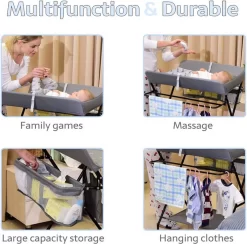 - Drie hoofdfuncties: we hoeven niet te bukken om de baby te helpen luiers / kleding te verschonen, massage te geven en de benodigdheden van de baby te ordenen.