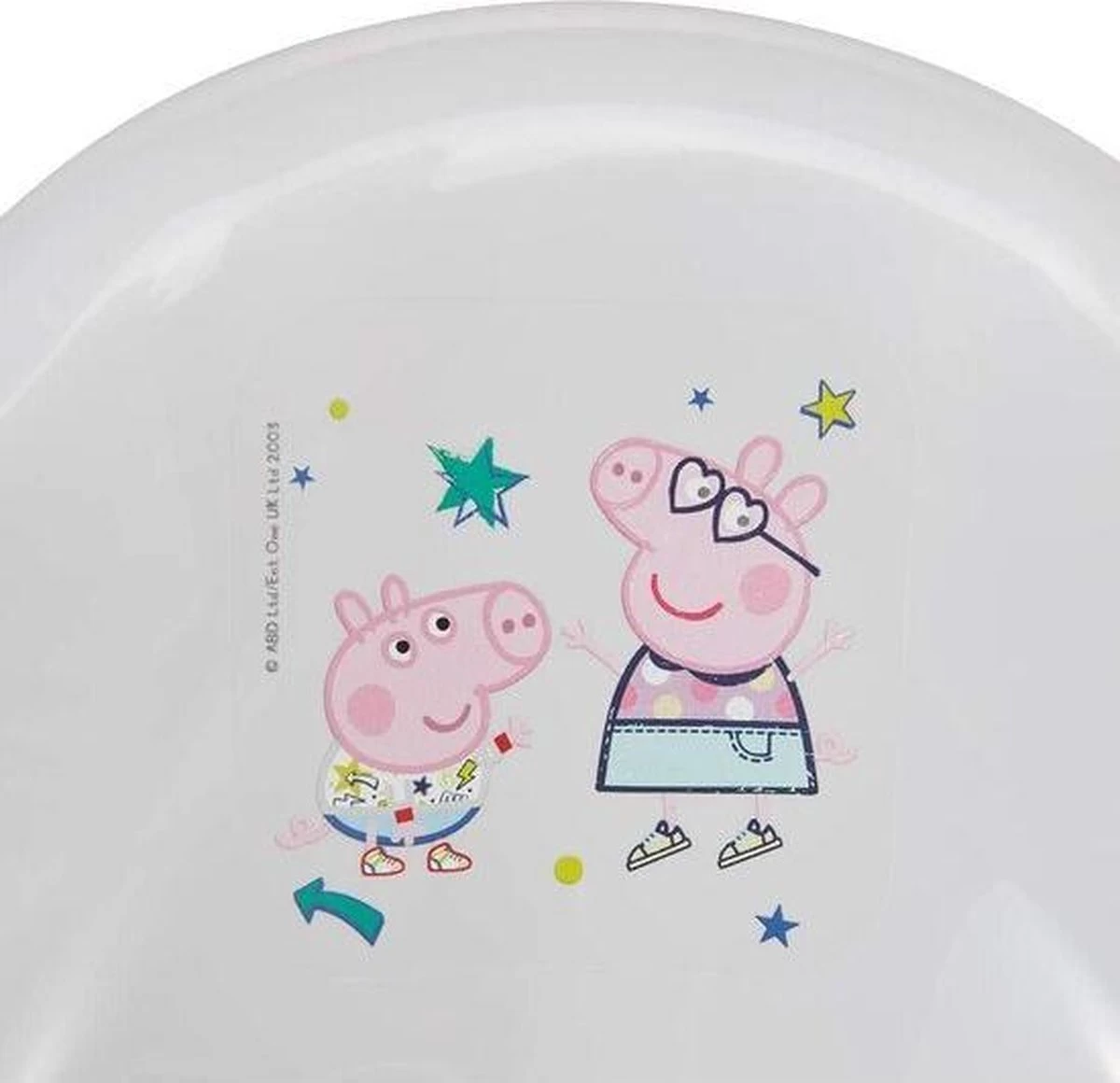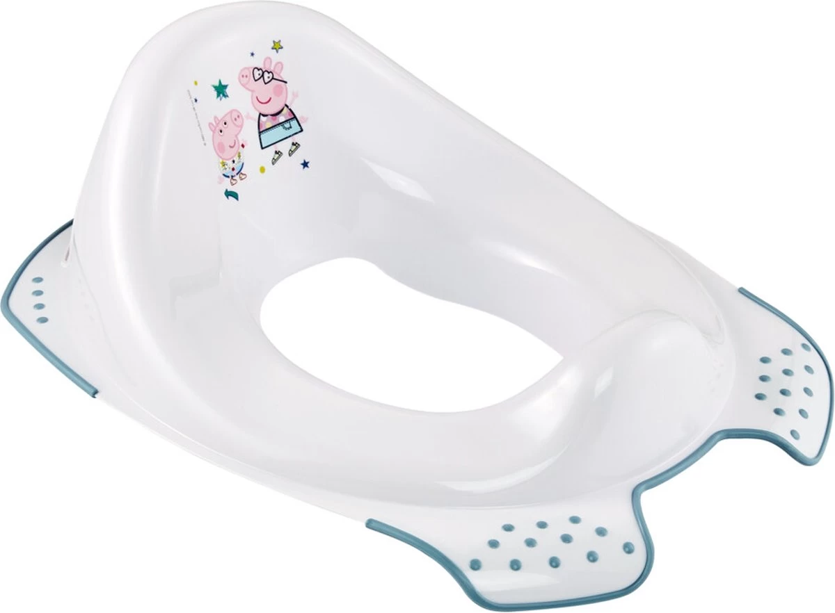 De Keeeper Peppa Pig is een vrolijke toilettrainer met een afbeelding van Peppa Pig en George. Dankzij de rubber anti slip oppervlakken is de toiletverkleiner veilig voor je kind. De toilettrainer kan namelijk niet meer heen en weer schuiven op het toilet. De nieuwe technologie van overprint (IML) voorkomt dat de Peppa Pig afbeelding vervaagt of loslaat.