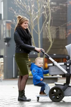 Wie kent het probleem niet? Je bent in verwachting van je tweede kindje, maar je hebt nog een kindje wat geen grote stukken kan lopen. De Eve Kids Kid Sit is de oplossing voor iedere ouder die graag mobiel is en wil blijven. De Kid Sit is ontwikkeld voor kinderen vanaf ongeveer 18 maanden oud tot een leeftijd van 4 jaar (18 kg.). De Kid Sit is eenvoudig te bevestigen aan de achter-as van je kinderwagen. Hij wordt bevestigd met de handige strips. Je kunt het plankje ook zonder het zitje gebruiken; het zitje is namelijk makkelijk los te koppelen.
