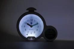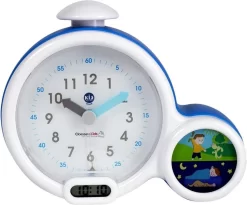 Voor alle ouders die het probleem kennen dat kinderen vaak te vroeg opstaan! De KidSleep klok is de ideale peuter- en kleuterwekker, die met een verlicht plaatje aangeeft of het al tijd is om op te staan. Deze 2-in-1 klok combineert de bekende KidSleep formule (het nog-even-slapen-lampje) met een prachtige klok. Kinderen kunnen zo de tijd leren én zien wanneer ze op mogen staan.