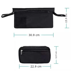 - Naast het grote hoofdcompartiment heeft de organizer een afritsbare zak met een ritssluiting om uw waardevolle spullen veilig te bewaren.