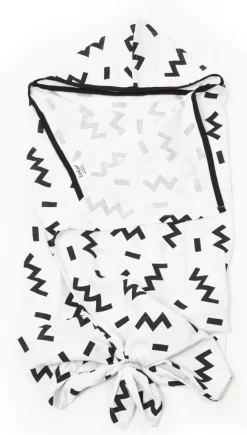 Door het rechthoekige formaat kun je je kleintje na het badje er lekker warm in wikkelen. Bij de beentjes zit een lusje waar je de onderste twee punten door kan halen om zo de badcape aan de onderzijde deels dicht te maken. De badcape is onmisbaar na ieder badje.