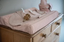 Een aankleedkussenhoes zorgt voor gemak bij het verschonen en comfort voor je kleintje. Door het gladde oppervlak van het aankleedkussen gebruik je deze meestal niet zonder aankleedkussenhoes. Omdat een aankleedkussenhoes bij uitstek een product is dat vaak gewassen zal worden, zijn alle hoezen die Koeka maakt voor aankleedkussens machinewasbaar. Een ongelukje is namelijk zo gebeurd dus meerdere hoezen is geen overbodige luxe! Check voor een mooi aansluitende aankleedkussenhoes de afmeting van je aankleedkussen. Deze hoes voor het verschoningskussen heeft als afmeting 45×73 cm en past perfect om het aankleedkussen Time to Change van Koeka. De bevestiging van de overtrek is vergelijkbaar met die van een hoeslaken. Je trekt hem gemakkelijk om je verschoningskussen heen en de hoes trekt zichzelf strak door het elastiek aan de onderzijde.