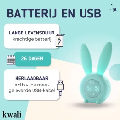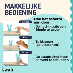 Met de kwali. slaaptrainer krijgen kinderen een betrouwbare ochtendroutine. Deze multifunctionele oplossing bestaat uit een kinderwekker, een nachtlampje en slaaptrainer.