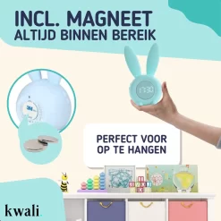 Daarom hebben we een magneet aangebracht in de slaaptrainer en krijg je een magnetische sticker meegeleverd. Zo hoef je de kinderwekker niet op het nachtkastje neer te zetten, maar kan je het op een beter bereikbare plek bevestigen.