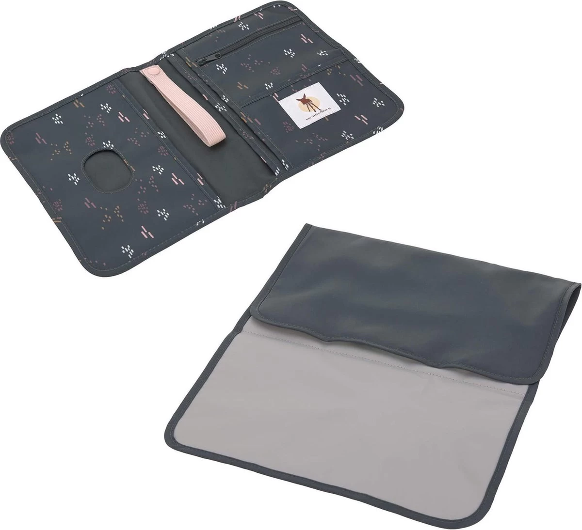 Functionele toepassingen zorgen voor een snelle en gemakkelijke luierwissel. Een compartiment voor natte doekjes met een praktische opening, verschillende zakken voor luiers en dergelijke, een zakje met ritssluiting, evenals een tape voor het bevestigen van een fopspeen, maken dit een praktisch accessoire. Een waterafstotende, zacht gevoerde verschoningsmat die past bij de tas, zorgt voor een optimale luierwissel voor de baby.