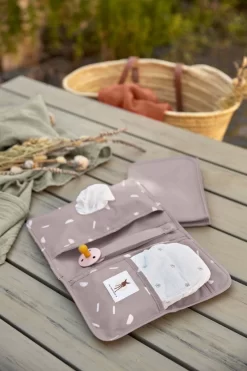 Functionele toepassingen zorgen voor een snelle en gemakkelijke luierwissel. Een compartiment voor natte doekjes met een praktische opening, verschillende zakken voor luiers en dergelijke, een zakje met ritssluiting, evenals een tape voor het bevestigen van een fopspeen, maken dit een praktisch accessoire. Een waterafstotende, zacht gevoerde verschoningsmat die past bij de tas, zorgt voor een optimale luierwissel voor de baby.