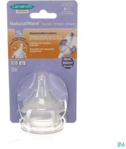 Het ontwerp van de NaturalWave flesspeen slow van het merk Lansinoh is gebaseerd op uitgebreid onderzoek en bevat unieke karakteristieken om moeders te verzekeren dat er gemakkelijk gewisseld kan worden van borst naar fles en terug. De speen is 100% silicone en heeft een brede basis van textuur. Er zit een verticale versteviging aan de binnenzijde van de flesspeen en heeft een Air Ventilation System dat de inname van lucht verminderd.