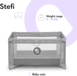 Het snelle opvouwsysteem van het bedje zorgt voor eenvoudig transport of opslag. Het vergemakkelijkt alles nog meer dankzij de transporttas die in de set is inbegrepen. Een praktisch handvat maakt het gemakkelijk te dragen, waardoor Stefi ook handig zal zijn tijdens het reizen.