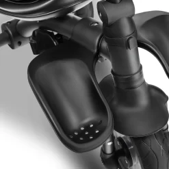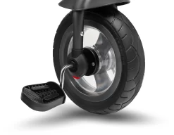 3 wielen met een diameter van 10’’ en 8’’ en speciaal ontworpen loopvak vergemakkelijken het rijden op hobbelige wegen. De wielen zijn gemaakt van hoogwaardig rubber waardoor het niet mogelijk is om ze lek te raken. Op de voorste wiel is er een spatbord die ervoor zorgt om de beentjes van het kind niet vuil te maken.
