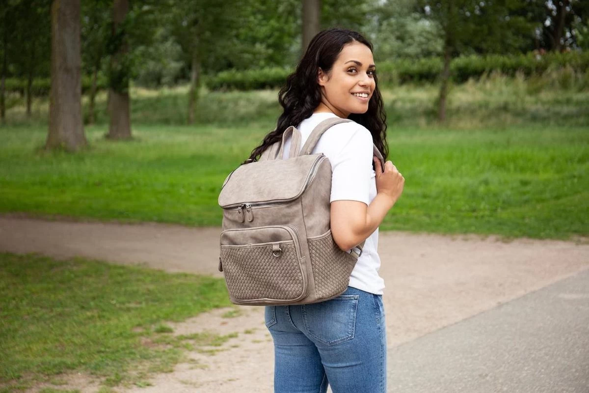 Luiers: Check. Snoetenpoetsers: Check. Onze Lisbon luierrugtas zorgt ervoor dat je jouw gehele luiertaschecklist georganiseerd en binnen handbereik hebt. Naast de twee hoofdvakken heeft de tas nog twee steekvakken aan de zijkant voor bijvoorbeeld je babyflesje of eigen drinken. De Lisbon braided luierrugtas is essentieel en zowel overdag met je kindje als ’s avonds met je vriendinnen op stap te gebruiken. Het ultieme gemak met stijl!