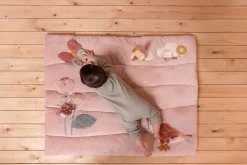 Op verkenning in het bloemenweide. Dit gewatteerde boxkleed zal de zintuigen van je kindje stimuleren met dank aan de vele verschillende texturen en activiteiten. Er valt zoveel te zien en te ontdekken voor kleine ontdekkingsreizigers. De roze vlinder heeft leuke, gekreukte vleugels en het kleine musje begint te rinkelen als je baby met haar speelt. Het boxkleed is daarnaast voorzien van een spiegeltje en beschikt over een transparante ring met 3 kleine kraaltjes die rammelen als ze verplaatsen.