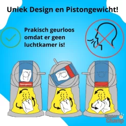 – Pak de zak en druk op de knop om deze handig en geheel reukloos te verwijderen.