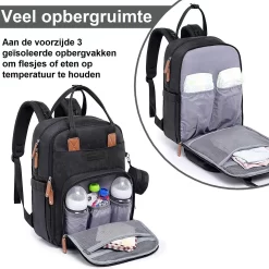 Je hebt altijd ontzettend veel spullen nodig wanneer je op pad gaat met baby’s of peuters. En die wil je natuurlijk het liefst in één tas opbergen! De luier- en verzorgingstas van Zedar is erg ruim en praktisch ingedeeld; de luiertas beschikt over 2 grote en 18 handige opbergvakken waarvan 5 geïsoleerd. Dit is ideaal om de flesjes voor lange tijd warm te houden. De tas wordt geleverd met een verschoningsmat waar een luiervak en doekjesvak in zit. Daarnaast heeft de tas een antidiefstal vak voor waardevolle spullen en een etui voor de spenen. Uiteraard is er ook een compartiment (met rits) voor de ouders, waar je telefoon, portemonnee of andere belangrijke items kunt opbergen. Of je nou boodschappen gaat doen, op een speelafspraakje gaat of een dagje weg; deze veelzijdige tas komt altijd van pas!
