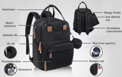 De tas beschikt over een zeer stijlvolle, strakke en moderne uitstraling. Dit maakt de tas geschikt voor werkelijk iedere gelegenheid, en ja ook ieder outfit! Naast dat de luiertas lekker veel opslagruimte biedt kun je deze ook nog eens op verschillende manieren dragen. Naast een schoudertas met verstelbare schouderriemen, heeft de tas ook handige handvaten. Hiermee is de tas snel op te pakken en kan deze zelfs dienen als tote-bag. Dit is nog niet alles! Want je kunt de tas dankzij de twee bijgeleverde buggy straps binnen een handomdraai ophangen aan je buggy, wandelwagen of kinderwagen. Zo kies je telkens zelf hoe je de tas het liefste draagt. Daarbovenop is er een extra riem aan de achterkant waarbij je de rugzak gemakkelijk over je kofferhandgreep kan plaatsen!