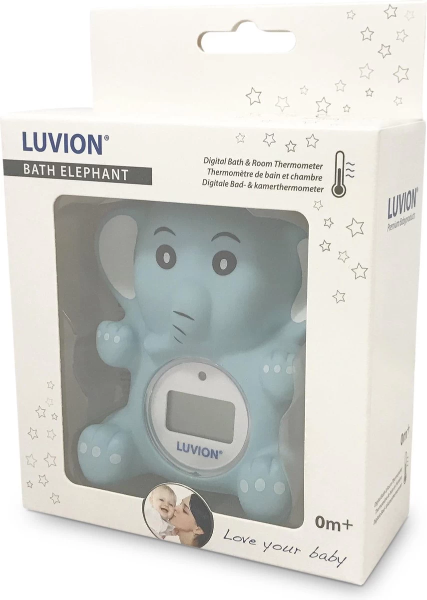 Met deze bad/kamer thermometer van het merk Luvion weet je altijd of de temperatuur juist is, daarnaast is het olifantje tegelijk ook leuk te gebruiken als speeltje voor in bad.