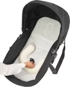 De Maxi-Cosi ShapeOfYou reiswieg is een duurzame reiswieg die je voor je pasgeborene kunt maken met je Maxi-Cosi Lila CP of Maxi-Cosi Lila SP kinderwagen. Het heeft een uniek matrasontwerp dat het platte-hoofd-syndroom voorkomt en dankzij het extra kussen biedt het je baby een natuurlijkere positie tijdens de eerste maanden. Gebruik onze ShapeOfYou reiswieg vanaf de geboorte, voor het grootste comfort vanaf de eerste dag. De reiswieg heeft een voorgevormde uitsparing om platte achterhoofdjes te voorkomen en een verwijderbaar kussen dat zorgt voor een ergonomische houding bij pasgeboren baby’s tot drie maanden oud. Ouders kunnen eindeloze wandelingen maken zonder zich zorgen te hoeven maken over de houding of het comfort van hun baby. Comfort is niet alleen belangrijk voor pasgeboren kindjes, maar ook voor hun ouders. De Lila ShapeOfYou reiswieg weegt slechts 3,2 kg en is een echte lichtgewicht. Hergebruik is beter dan productie. De Lila ShapeOfYou reiswieg maakt gebruik van het stoelframe, zonnescherm en matras van de Lila CP of Lila SP en is een bijzonder duurzame keuze. De geïntegreerde nap keeper is daardoor altijd te gebruiken. Je kindje kan comfortabel dromen zonder te worden gewekt door de felle zon of vervelende insecten. Kindjes die oud genoeg zijn om te zitten, willen tijdens elke wandeling genieten van al het moois om hen heen. Dit betekent dat het tijd is om het stoeltje weer op de Lila CP of Lila SP te bevestigen. Verwijder het matras, het zonnescherm, het frame en de duwstang van de reiswieg en bevestig alles weer aan het stoeltje. Vouw de rest van de bekleding op en berg veilig op voor andere baby’s. De Lila ShapeOfYou reiswieg is compatibel met de Lila SP en Lila CP.