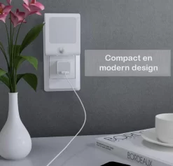 Deze nachtlamp is ideaal voor donkere plekken. De LED-wandlamp met bewegingssensor is ideaal voor binnenshuis. De LED-wandlamp bevordert de veiligheid in jouw huis. Als het donker is gaat de nachtlamp automatisch aan zodra de sensor beweging signaleert. Als de sensor geen beweging meer detecteert gaat de wandlamp vanzelf uit. De nachtlamp heeft een mooi design en is compact. De lamp werkt op stroom en werkt gelijk zodra hij in een stopcontact geplaatst is.