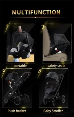 Deze Luxe Kinderwagen 3 in 1 voor baby’s van 0-3 jaar oud mag niet ontbreken in jouw babypaleis. De matchende 3-in-1 set bestaande uit een kinderwagen, babybed en maxi cosi, kan zelfs in 3 standen worden gezet (buggy, kinderwagen met het gezicht naar binnen en kinderwagen met het gezicht naar buiten gericht). Verder is er voldoende opbergruimte voor luiers of melkflessen en kan de kinderwagen volledig worden ingeklapt.