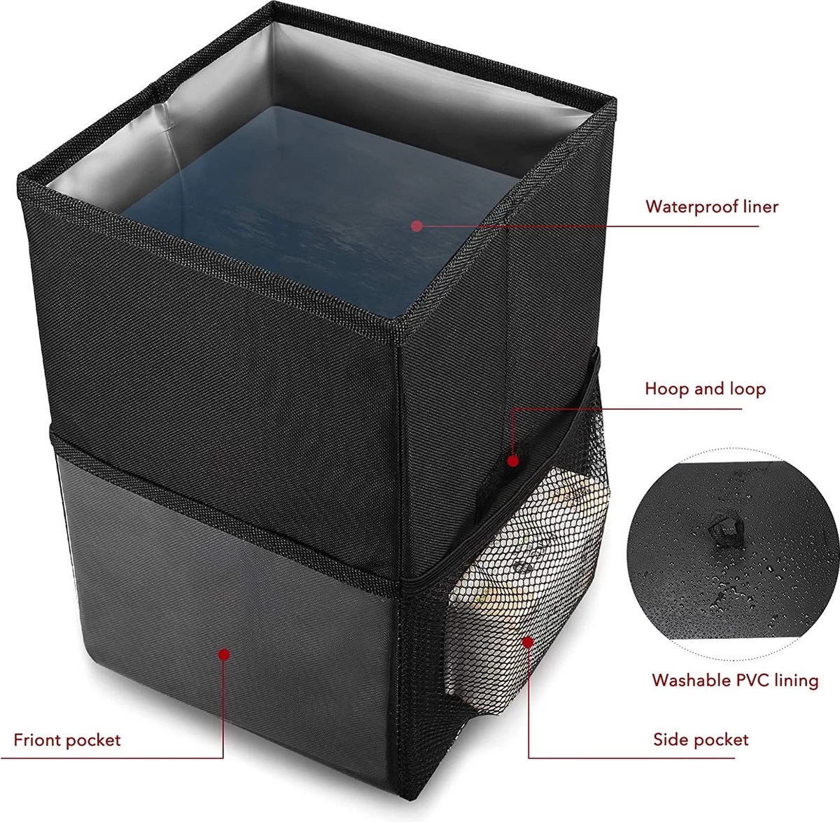 - Superieure duurzaamheid en waterdichtheid: Beicarin afvalbak is gemaakt van hoogwaardig Oxford polyester. Het is dus sterker en robuuster dan vergelijkbare producten. Het interieur van de auto-afvalbak heeft een waterdichte voering die duurzaam, lekvrij en gemakkelijk schoon te maken en te wassen is. Geen zorgen meer over gemorste drankjes in de auto.