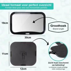 De baby autospiegel is 360 graden draaibaar en is zonder enkele moeite te verstellen in alle richtingen. Met een klein duwtje zet je de brede spiegel eenvoudig in de gewenste positie, zodat je altijd een perfect overzicht hebt. De baby autospiegel is kraakhelder en duidelijk zodat je snel kan zien of jouw kindje al slaapt of lekker aan het spelen is, zonder een gevaarlijke situatie te creëren. Bovendien is het spiegelglas onbreekbaar, zodat er nooit gevaar is voor verwondingen door scherpe scherven.