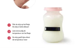 De thermometer plakt op de fles met behulp van een sticker en is herbruikbaar.