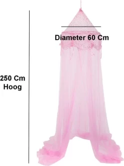 Prinsessen Klamboe kinderkamer Klamboe Baby kamer Klamboe 1 persoons, voor boven bed Kleur: Roze Afmetingen: 60 x 60 x 250 Cm