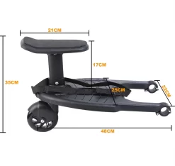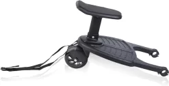 Opzoek naar een stevige en veilige meerijdplank? Dan is dit meerijdplankje wellicht iets voor jou! Ideale oplossing voor als je gaat wandelen met een baby en een wat ouder kind. De baby zit lekker in de kinderwagen en het oudere kindje kan staand of zittend mee op het meerijdplankje. Dit zonder dat uw oudere kindje moe wordt van het wandelen. Je kunt het meerijdplankje zowel aan de voorkant of aan de achterkant van de kinderwagen bevestigen.