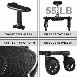 Dit universele meerijdplankje is geschikt voor bijna iedere kinderwagen of buggy door de handige bevestiging met klittenband.