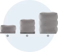 Dit opblaasbare reiskussen heeft 2 compartimenten waardoor het op verschillende hoogtes kan worden opgeblazen