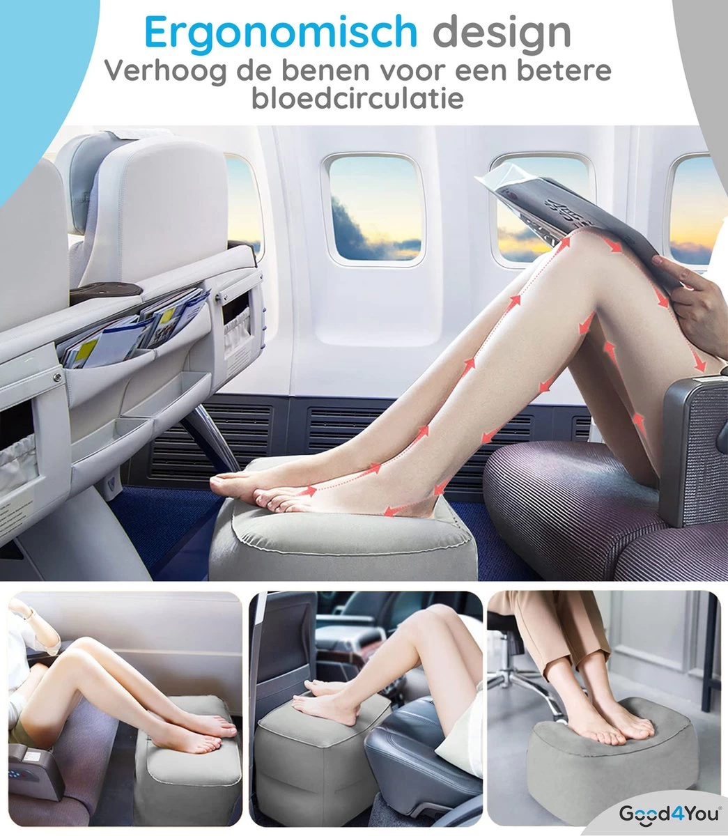 ✓ Te gebruiken als vliegtuigbedje, voetensteun of reiskussen