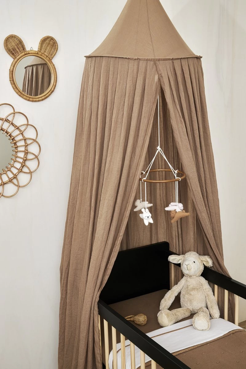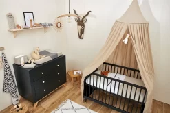 De klamboe is verkrijgbaar in héél veel verschillende, trendy kleuren. Zo vind je altijd precies die ene juiste match met de babykamer en past de klamboe ook perfect bij de rest van de complete Meyco Baby collectie.