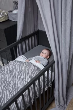 De klamboe is verkrijgbaar in héél veel verschillende, trendy kleuren. Zo vind je altijd precies die ene juiste match met de babykamer en past de klamboe ook perfect bij de rest van de complete Meyco Baby collectie.