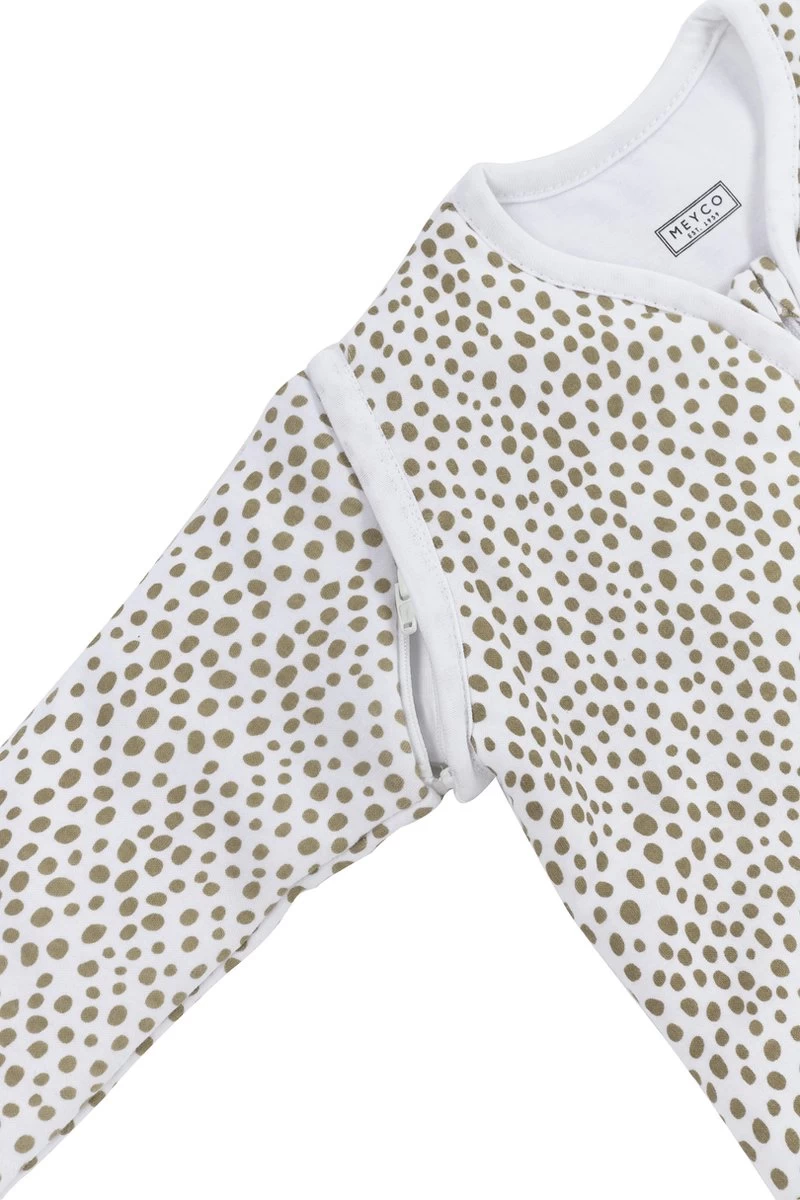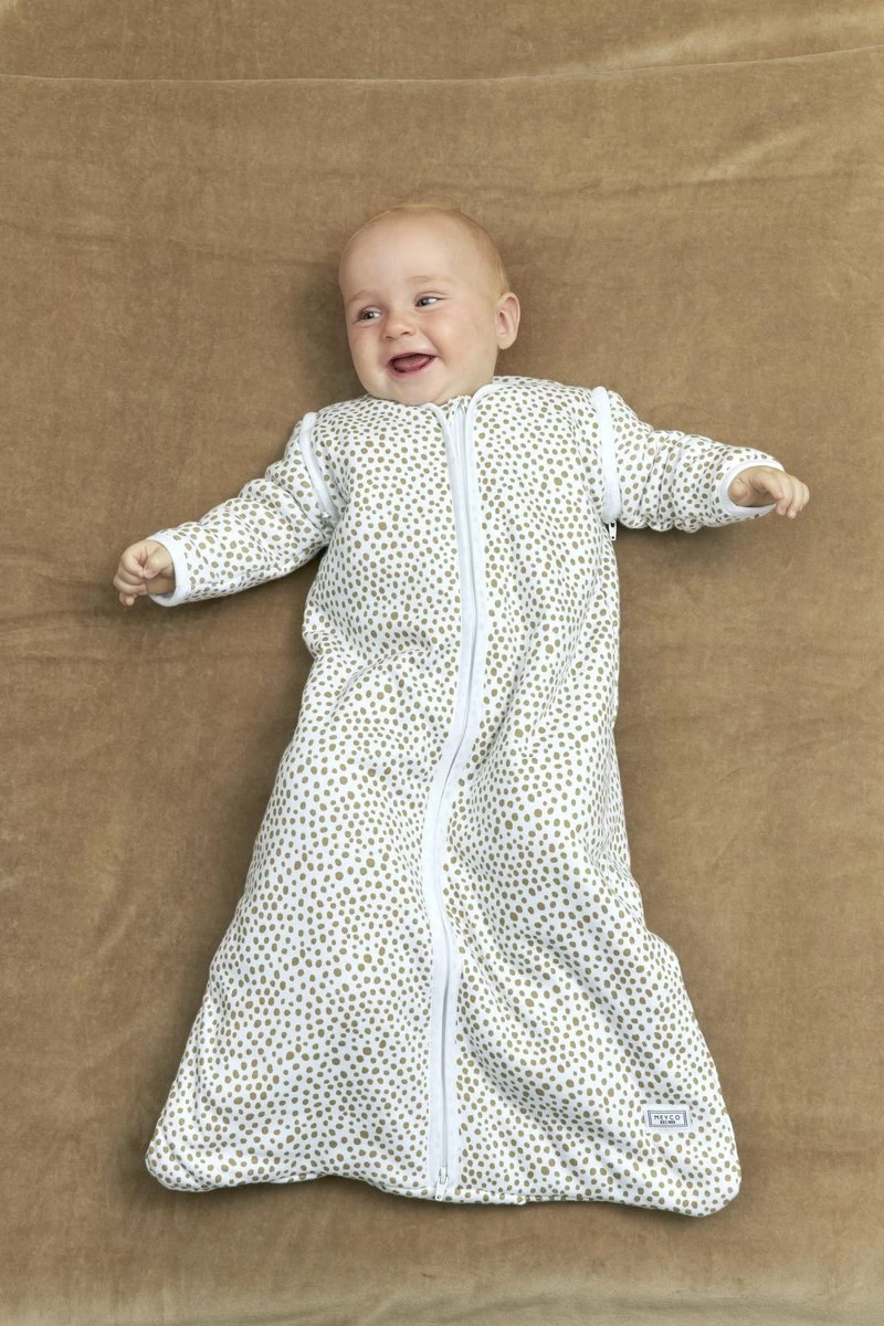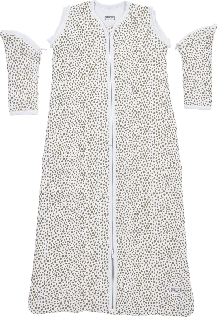 De Meyco slaapzak met afritsbare mouwen heeft 2 lagen zacht katoen en een lichte vulling. Comfortabel en warm in de winter en door de afritsbare mouwtjes en 100% katoenen stof ook fijn ademend in het voor- en najaar. Een Meyco slaapzak heeft een veilige pasvorm door de goede aansluiting bij de hals en armpjes. De slaapzak heeft een hip dessin en kunnen gecombineerd worden met de complete Meyco collectie.Verkrijgbaar in de maten: