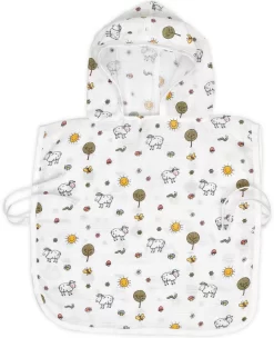 Kleed je na een bad of douche in de Mike & Molly badponcho. Deze hydrofiele badponcho is gemaakt van 100% katoen en heeft een capuchon met een vrolijke print van de twee favoriete schaapjes.