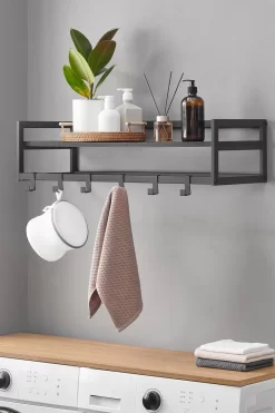 Op zoek naar een praktische en stijlvolle kapstok? Kies dan voor de industriële wandkapstok van MAZAZU. Met zijn luxueuze uitstraling en all-black design is deze kapstok een echte eyecatcher in jouw interieur. De 80 cm brede kapstok beschikt over een legplank en 5 moderne haken, zodat je genoeg ruimte hebt voor al je jassen, tassen en accessoires. Het stevige metalen frame zorgt ervoor dat de kapstok stabiel en veilig aan de muur blijft hangen.