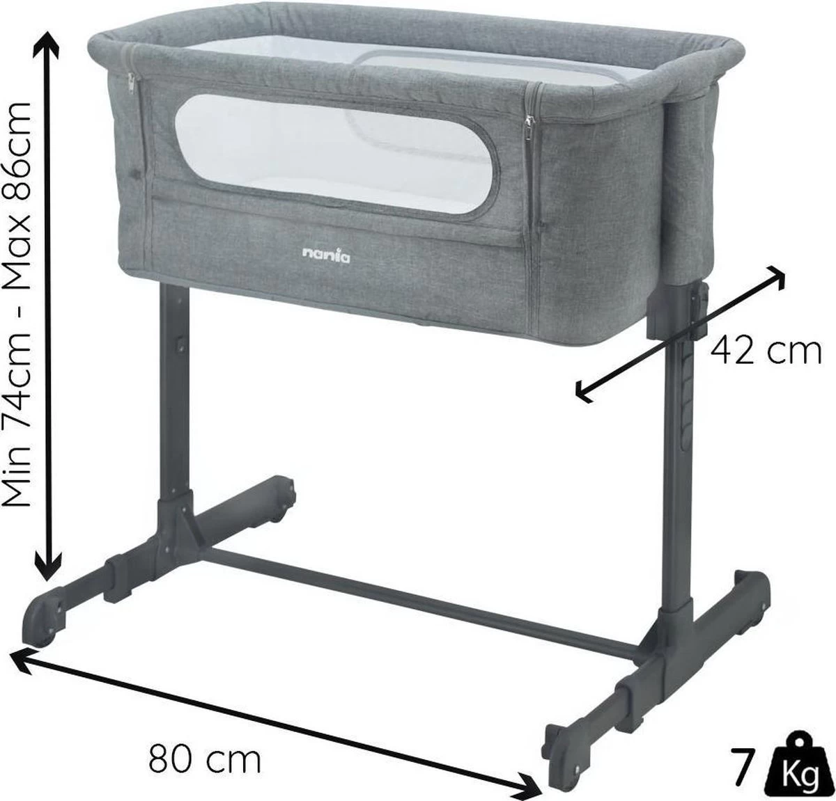 Met de Nania DODI Co-Sleeper slaapt je kindje lekker en veilig dicht bij jou. Het bedje is in 5 verschillende hoogtes instelbaar en heeft 4 zwenkwielen voor optimale flexibiliteit.