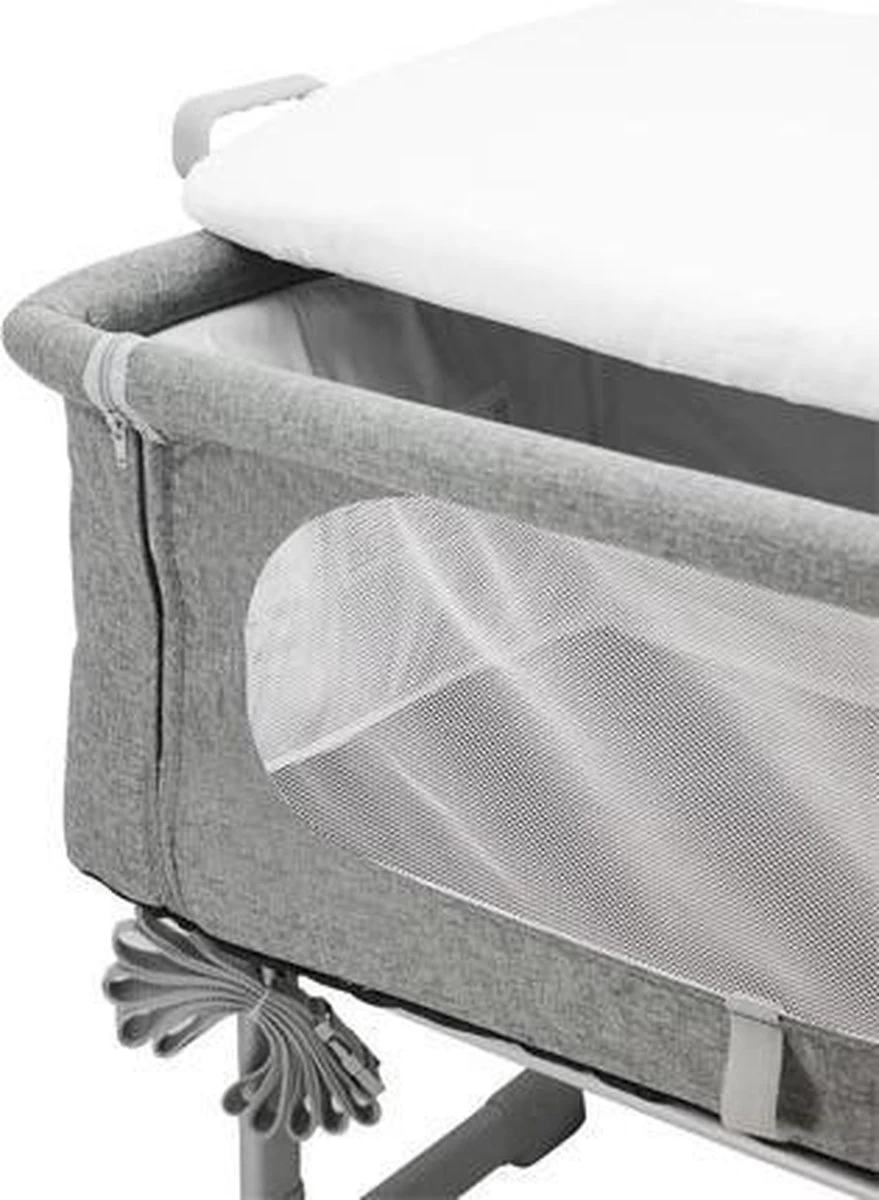 De zijkant van de Co-Sleeper is met de rits eenvoudig te openen of te sluiten.