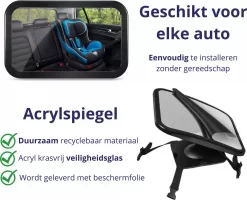 Nelbar Autospiegel Baby Verstelbaar – Achteruitkijkspiegel – Drempelproef – Baby Spiegel Auto Achterbank – Achteruitkijk Spiegel – 360 Graden Verstelbaar – XL Formaat