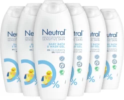De babyhuid is aanzienlijk dunner dan de huid van volwassenen. Hierdoor is de babyhuid extra gevoelig voor invloeden van buitenaf. Om de huid van je kindje toch goed te verzorgen, gebruik je Neutral Parfumvrij Baby Wasgel. De zeepvrije wasgel wast het huidje van je baby op een milde wijze. Hiermee verminder je het risico op irritatie van het gevoelige babyhuidje. Jij en je babytje kunnen vanaf nu weer zorgeloos genieten van het babybadje. Met 0% parfum, 0% kleurstof en 0% parabenen is Neutral Parfumvrij Baby Wasgel speciaal ontwikkeld voor het gevoelige babyhuidje. Uiteraard is de wasgel geschikt voor dagelijks gebruik.
