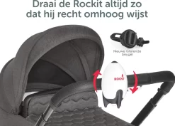 | Verpakkingsinhoud | NIEUWE draaibare montage beugel : Gemakkelijker te monteren en te verwijderen met een nieuw wieldraai-systeem. Kan worden gemonteerd op de zijstang of de bovenste handgreep. Hoe hoger de montage hoe beter de Rockit functioneert. De Rockit altijd in de verticale stand, dit is efficiënter. De Rockit kan dan langzamer schommelen en de batterij gaat langer mee. Nieuwe beugel past ook op de 1ste model Rockit. Naast je kinderwagen, heb je een buggy of een stroller, en zou je de Rockit Baby Rocker willen gebruiken. Hiervoor heb je enkel een 2de montagebeugel voor nodig, zodat je de Rockit gemakkelijk kan switchen tussen je kinderwagen, buggy of stroller. Ook handig voor de kinderwagen, buggy die bij de grootouders of gastouders staan. |