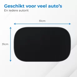 Het zonnescherm van Nuvance heeft een afmeting van 51 x 31 centimeter en het is voorzien van een universele vormgeving, waardoor het uitermate geschikt is voor iedere autoruit. Hierdoor hoef je enkel de gewenste autoruit schoon te maken om vervolgens het zonnescherm op de ruit te kunnen bevestigen. Bij aankoop ontvang je maar liefst twee (2) stuks, zodat je de volledige achterbank van de nodige schaduw kan voorzien.