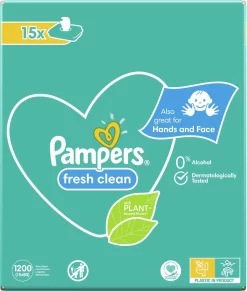 Wanneer je je baby’s gevoelige huid reinigt, is niets zo belangrijk als een goede verzorging. Pampers Fresh Clean babydoekjes bevatten geen alcohol, zodat je ze vol vertrouwen elke dag kan gebruiken.