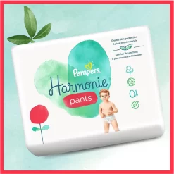 Pampers Harmonie pants luierbroekjes zijn hypoallergeen en dermatologisch getest. Zachte huidbescherming. Met materialen van plantaardige oorsprong. Pampers Harmonie pants luierbroekjes zijn gemaakt met zachte plantaardige materialen, ze zijn hypoallergeen, dermatologisch getest en zacht voor de huid van je baby. Ze bevatten geen parfum, lotion en geen enkele van de 26 EU allergenen en garanderen tot 12 uur droogheid van Pampers, zodat elke ouder er zeker van is op de Pampers kwaliteit te kunnen rekenen. Dankzij hun 360° rekbare tailleband zijn ze gemakkelijk te verwisselen, zelfs als je niet wil stilliggen. Ze hebben schattige prints en een handige Pampers urine-indicator: jij en je baby zullen er helemaal weg van zijn. Deze luierbroekjes worden ook gemaakt met verantwoord geproduceerde cellulose en zijn gecertificeerd door het onafhankelijk label Standard 100 van Oeko-Tex, een van de meest veeleisende certificeringen ter wereld.