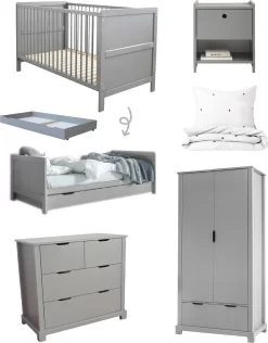 Het meegroeibed grijs uit de collectie van Petite Amelie inclusieve matras is een stijlvolle en praktische keuze voor elke babykamer. Het babybed heeft een strak en modern design dat zal passen bij elk interieur. Het is gemaakt van duurzame materialen om de veiligheid en het comfort van uw kleintje te garanderen. Dit ledikantje is ontworpen om mee te groeien met je baby, wat betekent dat het geschikt is voor pasgeboren baby’s tot kinderen van ongeveer zes jaar.