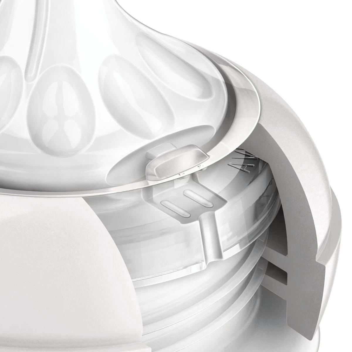 Het innovatieve ontwerp met dubbel ventiel vermindert darmkrampjes en ongemak doordat er lucht in de fles stroomt en niet in het buikje van de baby.