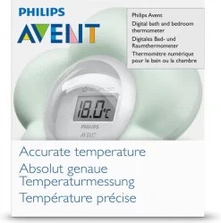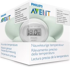 De digitale thermometer van Philips Avent is je maatje in de slaap- en badkamer. Hiermee houd je eenvoudig de water- of kamertemperatuur in de gaten terwijl je kleintje met de vrolijke bloem speelt.