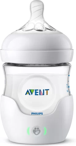 Met de slimme babyfles kun je je baby op een zo natuurlijk mogelijke manier flesvoeding geven. De houder past op alle plastic Philips Avent Natural-babyflessen van 125 ml. Maak het flesje klaar zoals altijd, bevestig de houder en geniet samen met je baby van de voeding.