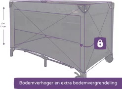 Wanneer je een extra matrasje in het campingbed gebruikt: zorg ervoor dat dit extra matrasje rondom goed aansluit in het campingbedje. Gebruik dus nooit een te groot of te klein matras. Er mag geen ruimte zitten tussen de zijwanden en het matras. De bodemverhoger mag niet meer gebruikt worden wanneer een kindje zichzelf kan optrekken aan de zijkanten van het campingbedje.